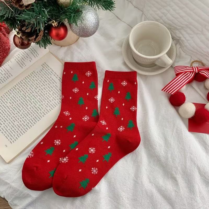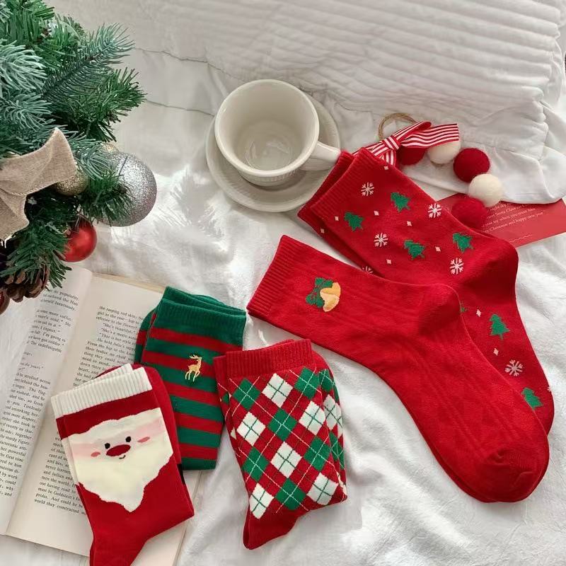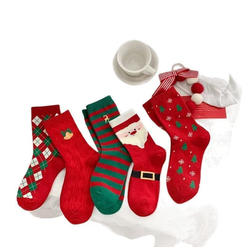 Set of 5 Pairs Women Girls Festive Christmas Theme Socks for Autumn and Winter One Size