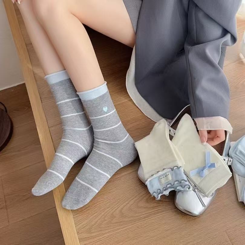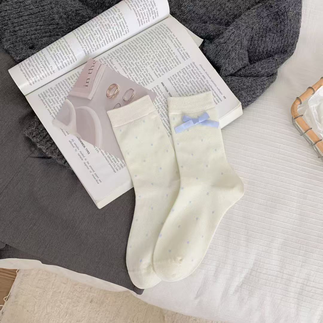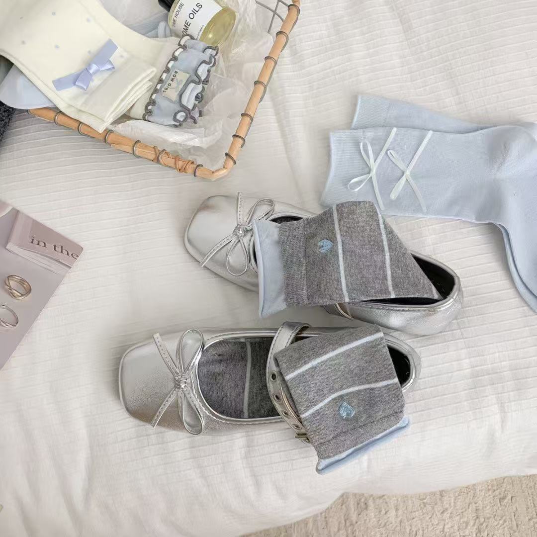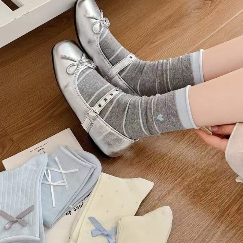 ✨ Set of 5 pairs of cute and trendy ribbon bow ankle socks for women and girls. These socks provide a comfy, soft, and breathable feel.