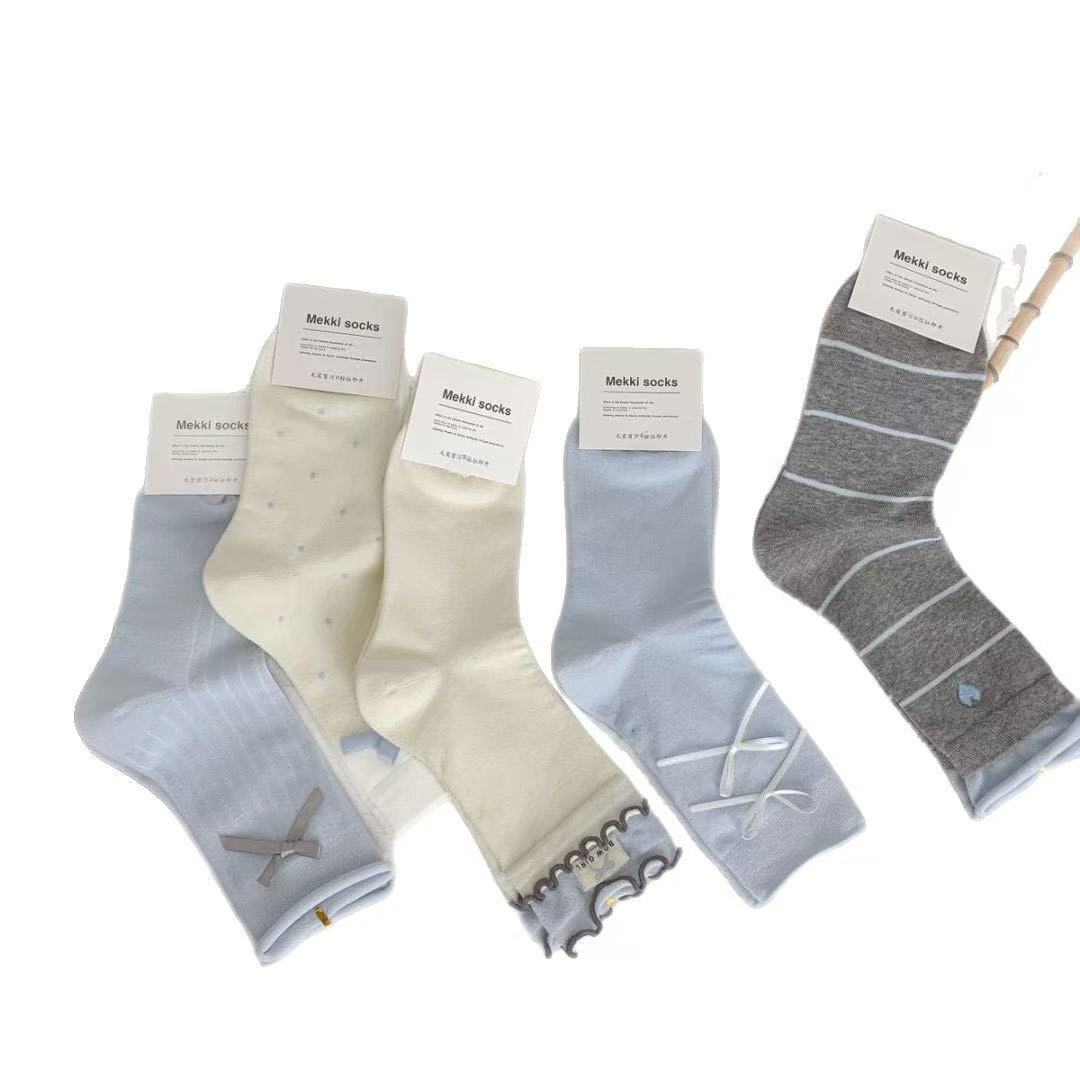 Set of 5 Pairs Women and Girls Cute and Trendy Ribbon Bow Soft Breathable Casual Comfortable Ankle Socks