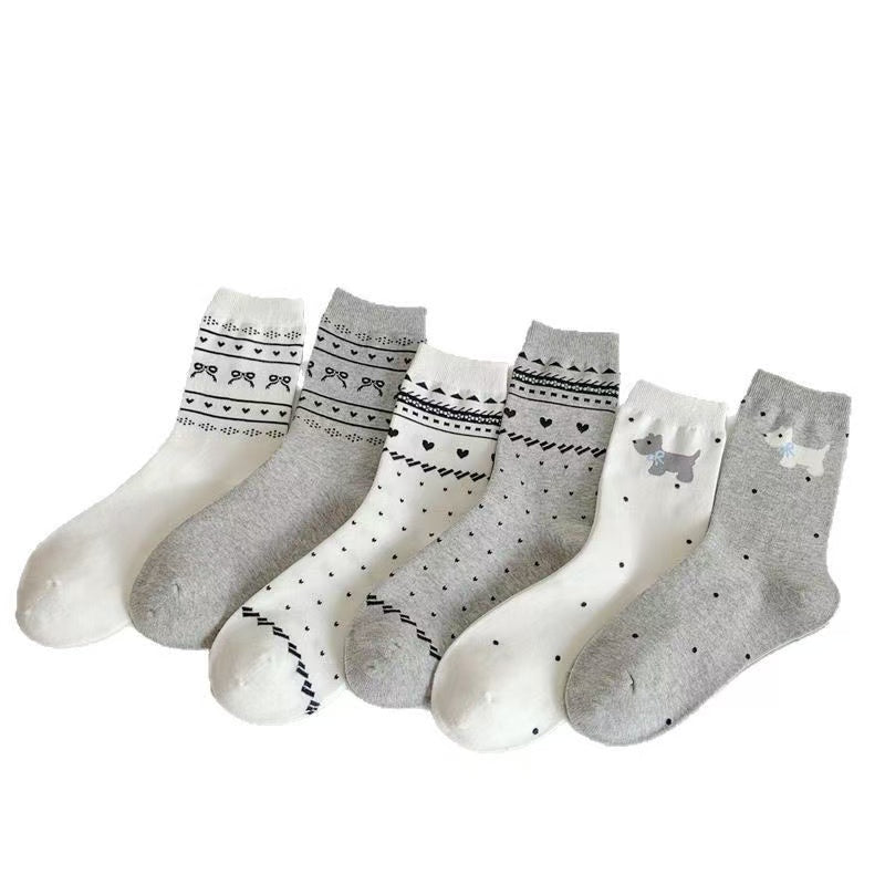 Sets of 6 Pairs Women and Girls Cute Trendy Ankle Socks