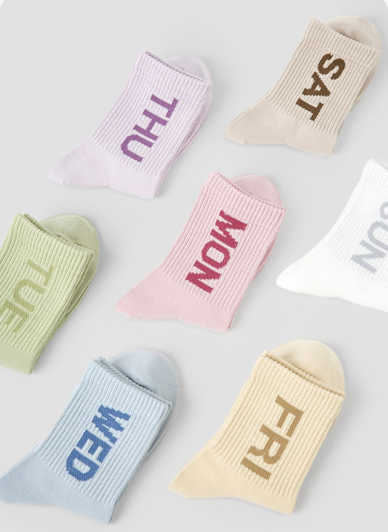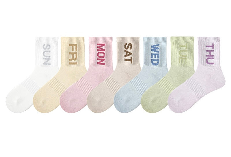 Sets of 7 Pairs Candy Pastel Colour Women Girls Teen Breathable Comfy Soft Trendy Daily Everyday Stretchy Ankle Socks